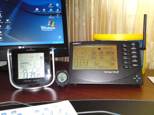 Οι τρείς μονάδες: 1.Η κύρια μονάδα Davis Vantage Pro2 Wireless. 2.Η δεύτερη βοηθητική μονάδα digi-tech radio controlled. 3.Ορειβατικό ρολόι χειρός SUUNTO X6 (βαρόμετρο, υψόμετρο, θερμοκρασία, καιρικά δεδομένα, πυξίδα, καταγραφή δεδομένων και επεξεργασία στον υπολογιστή) |