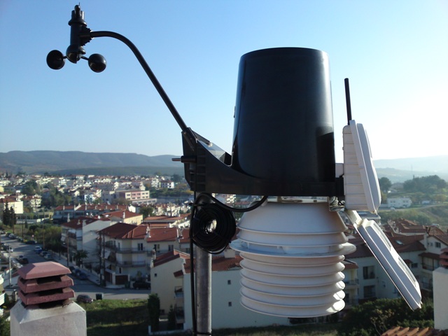 | Εξοπλισμός Μετεωρολογικού Σταθμού | Η τοποθεσία που βρίσκεται ο σταθμός είναι Δυτικά του δήμου Ωραιοκάστρου, με συντεταγμένες Γ.Πλάτος:40°43'53" Β - Γ.Μήκος:22°55'10" Α και σε Υψόμετρο 270 μέτρων. Ο τύπος του μετεωρολογικού σταθμού είναι Davis Vantage Pro2 Wireless Fan Aspirated. Το Fan Aspirated σημαίνει ότι οι εξωτερικοί αισθητήρες υγρασίας και θερμοκρασίας αερίζονται μηχανικά με την βοήθεια ανεμιστήρα για ακριβέστερη ένδειξη σε ορισμένες δύσκολες συνθήκες. Η εξωτερική μονάδα (ISS) αποτελείται από ανεμόμετρο, βροχόμετρο, αισθητήρα θερμοκρασίας και αισθητήρα υγρασίας. Στην εσωτερική μονάδα (κονσόλα) βρίσκεται ο αισθητήρας ατμοσφαιρικής πίεσης. Τα δεδομένα από την εξωτερική μονάδα (ISS) μεταδίδονται ασύρματα στην εσωτερική κονσόλα κάθε 2 δευτερόλεπτα. Χάρη σ'αυτή την γρήγορη μετάδοση δεδομένων καταγράφονται ακόμα και οι στιγμιαίες ριπές του ανέμου. Από εκεί τα δεδομένα μεταφέρονται μέσω του Data Logger της κονσόλας σε ένα Compaq pc όπου με την βοήθεια του προγράμματος Weather Link επεξεργάζονται και ενημερώνουν τις σελίδες στο internet κάθε 5 λεπτά. Οι βασικές μετεωρολογικές παράμετροι στη πρώτη σελίδα, ανανεώνονται αυτόματα κάθε 1 λεπτό. |